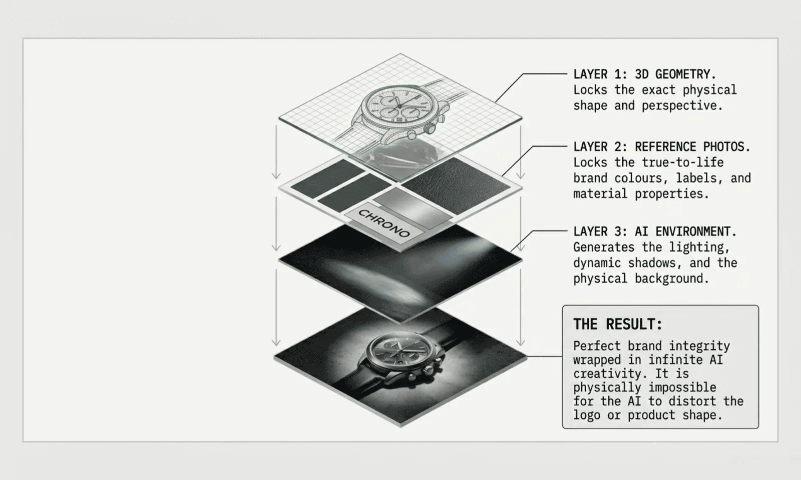 “Most AI tools are just guessing. By using a 3D model as a 'Digital Source of Truth,' we eliminate the hallucinations that make AI images look fake. We provide the geometric anchor AI needs to deliver 100% product accuracy”